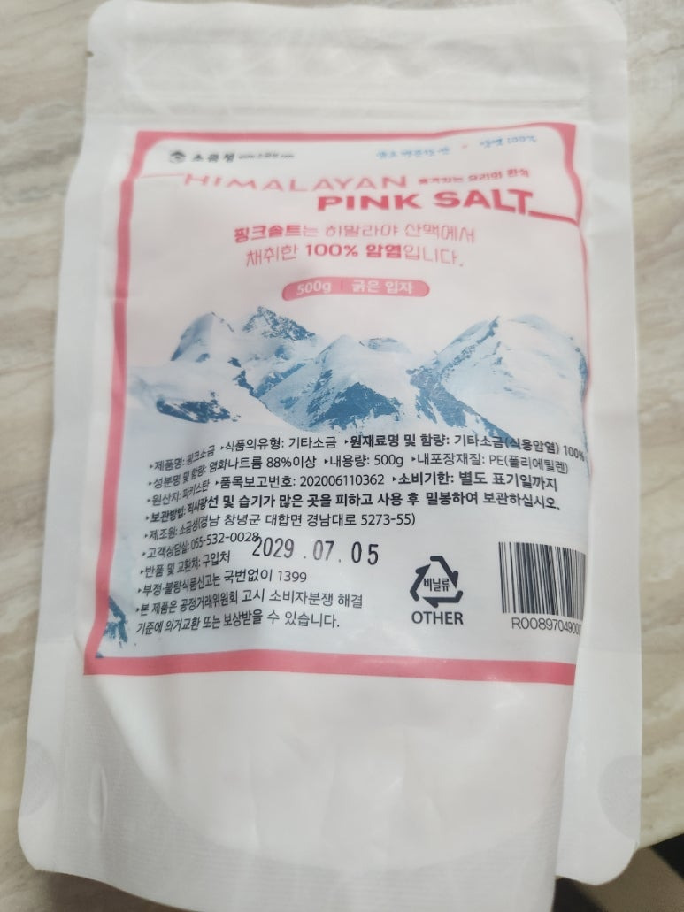소금성 히말라야 굵은입자 핑크소금 팩형, 500g, 1개 - 설탕/소금 | 쿠팡