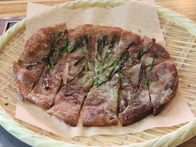 바로 한 메밀전에 양파 올려서 먹으면