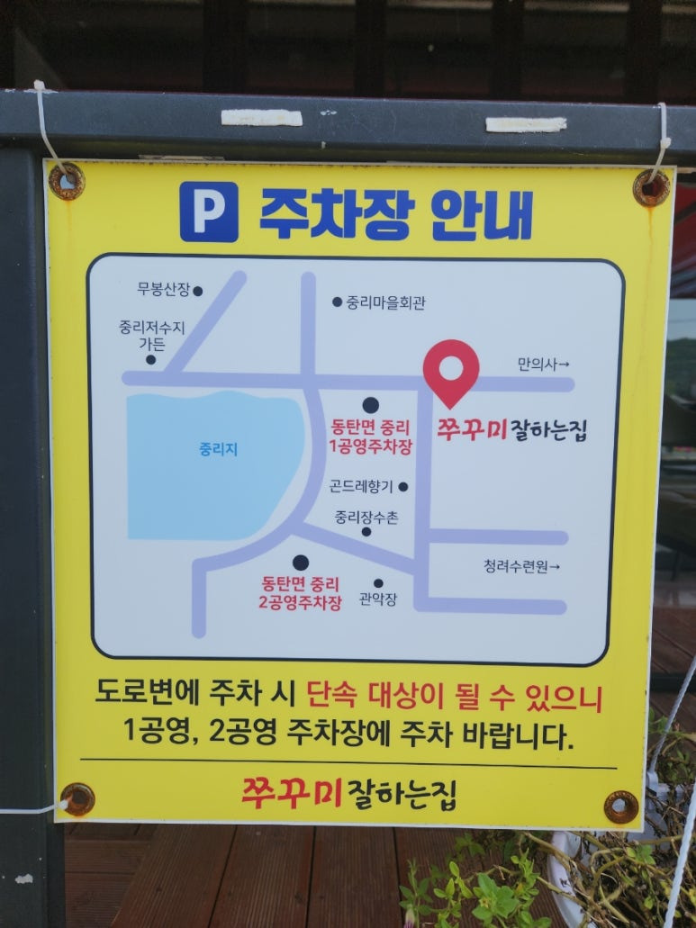 주차는 동탄면 중리 1,2공영주차장을 이용할 수 있구요.