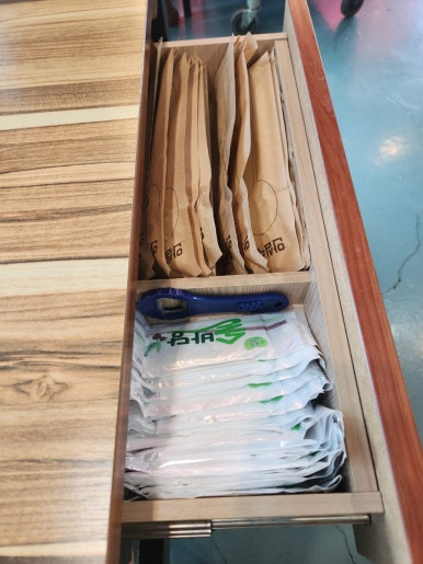 물티슈도 기본, 식기류도 깔끔하게 종이포장되어있어요.