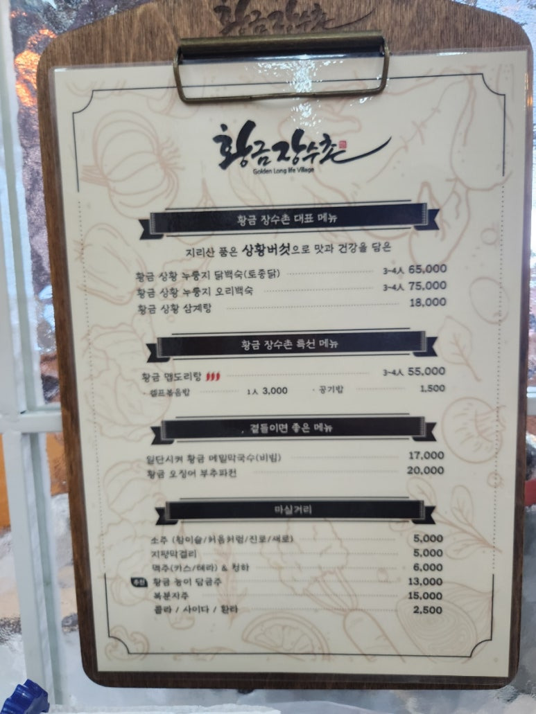동탄삼계탕 황금장수촌의 메뉴에요.