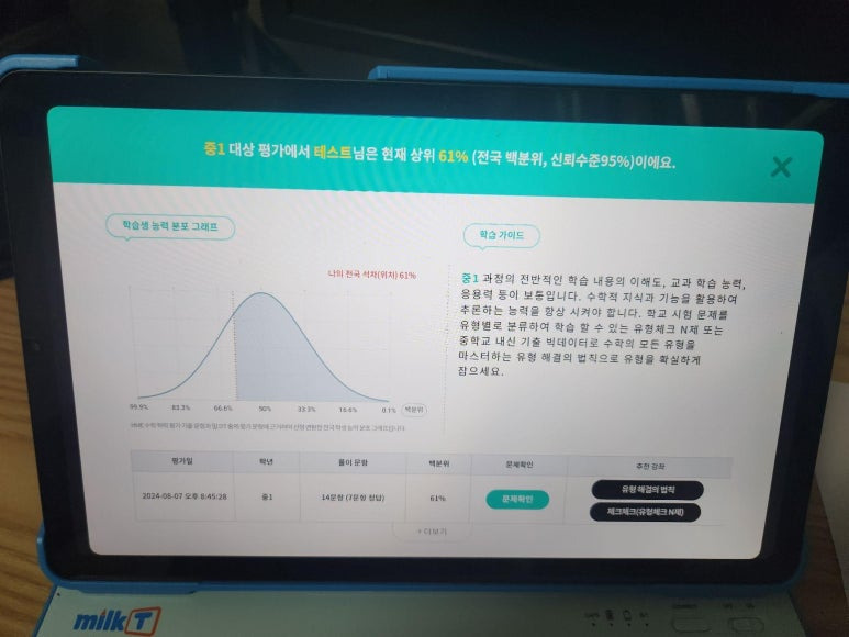 밀크T중학은 AI 진단 평가를 통해