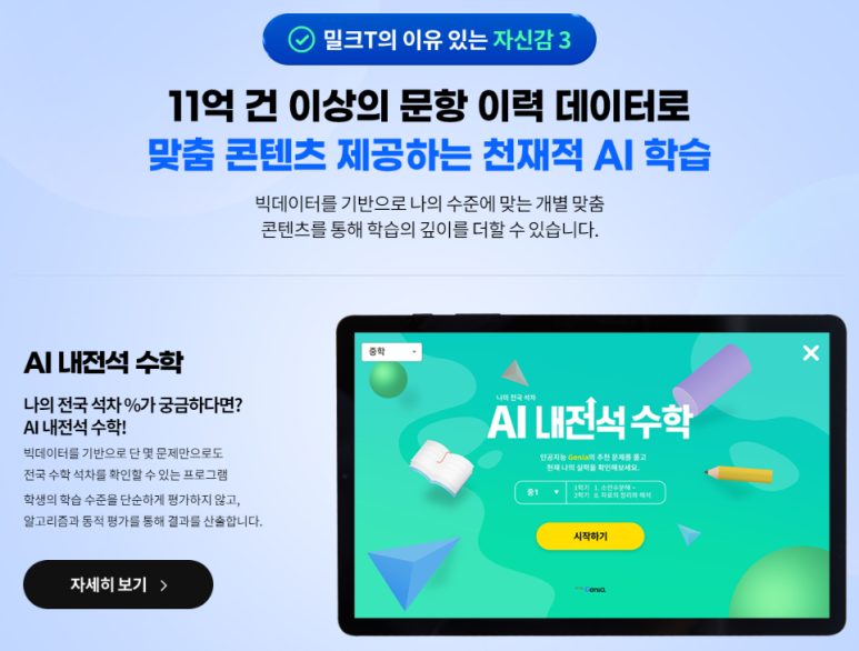밀크T중학은 43년간 쌓아온 학습 빅데이터와
