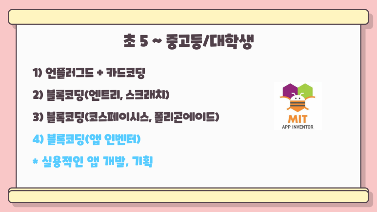 앱인벤터는 중고등학생을 대상으로도 수업이 가능하고
