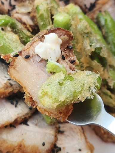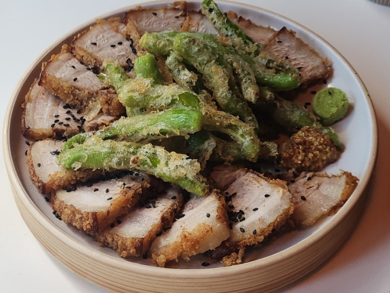 드디어 실물로 영접한 꽈리고추수육튀김이에요.