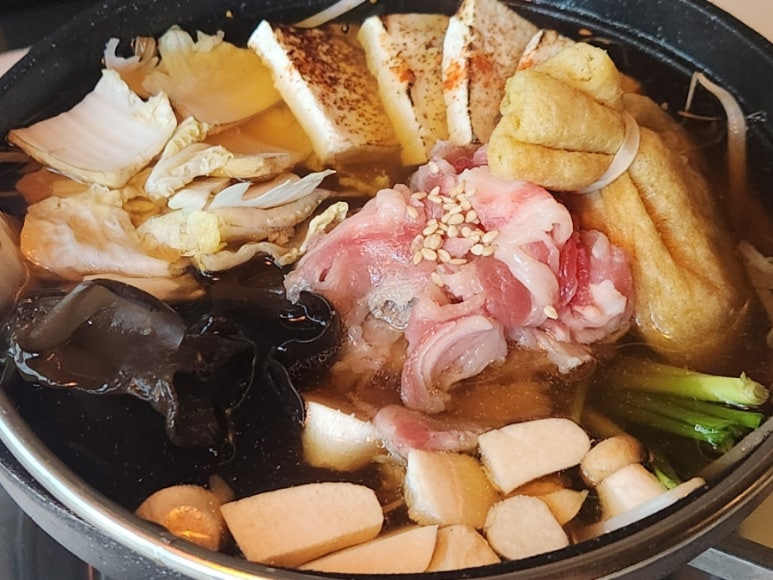 국물이 빠질 수 없어서 주문한 우삼겹나베