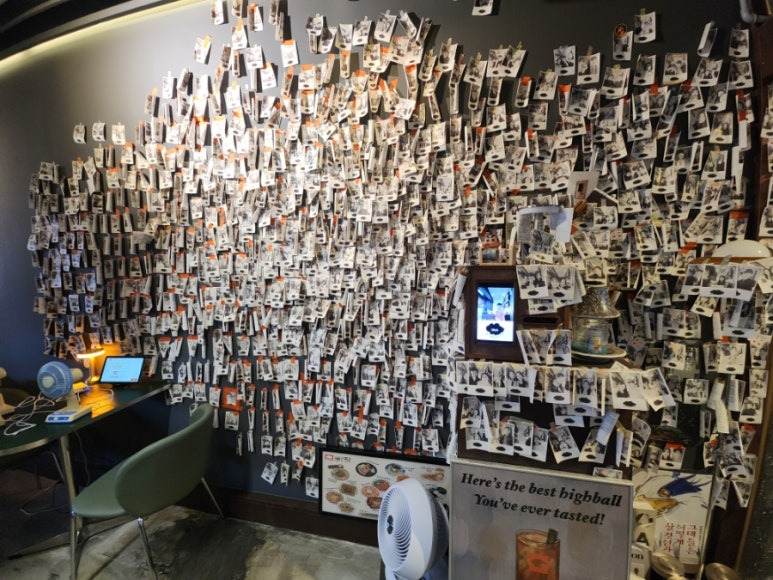빼곡한 사진들이 인테리어처럼 되어있어요.
