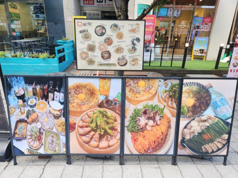 나혜석거리에 음식 사진이 쫙 진열되어있어서