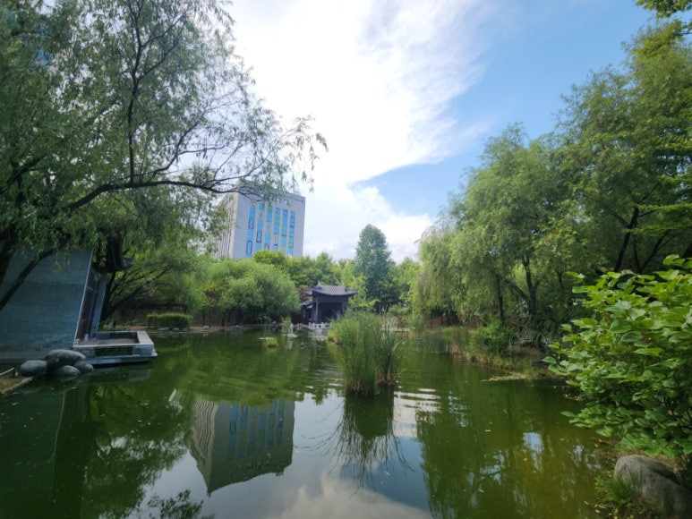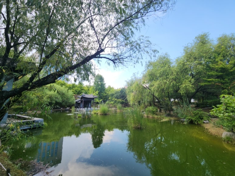 중간에 연못이 있어서 예뻐요.