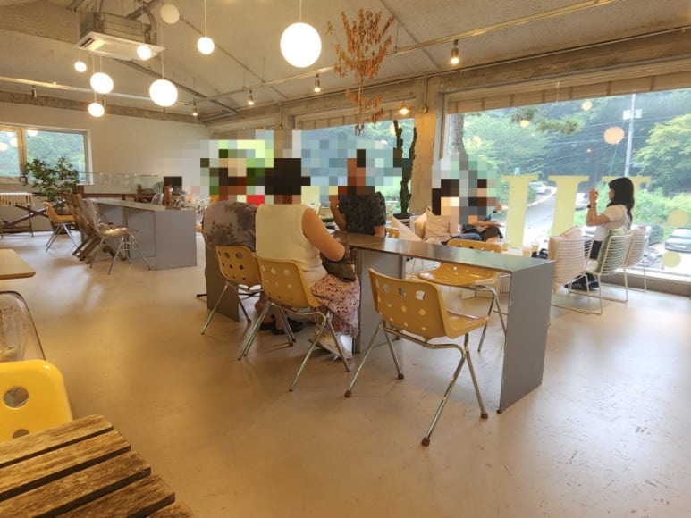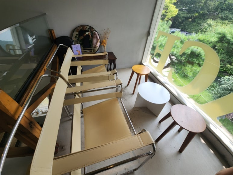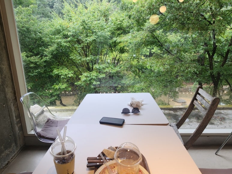통유리 창이라서 나무도 보이고 좋아요.