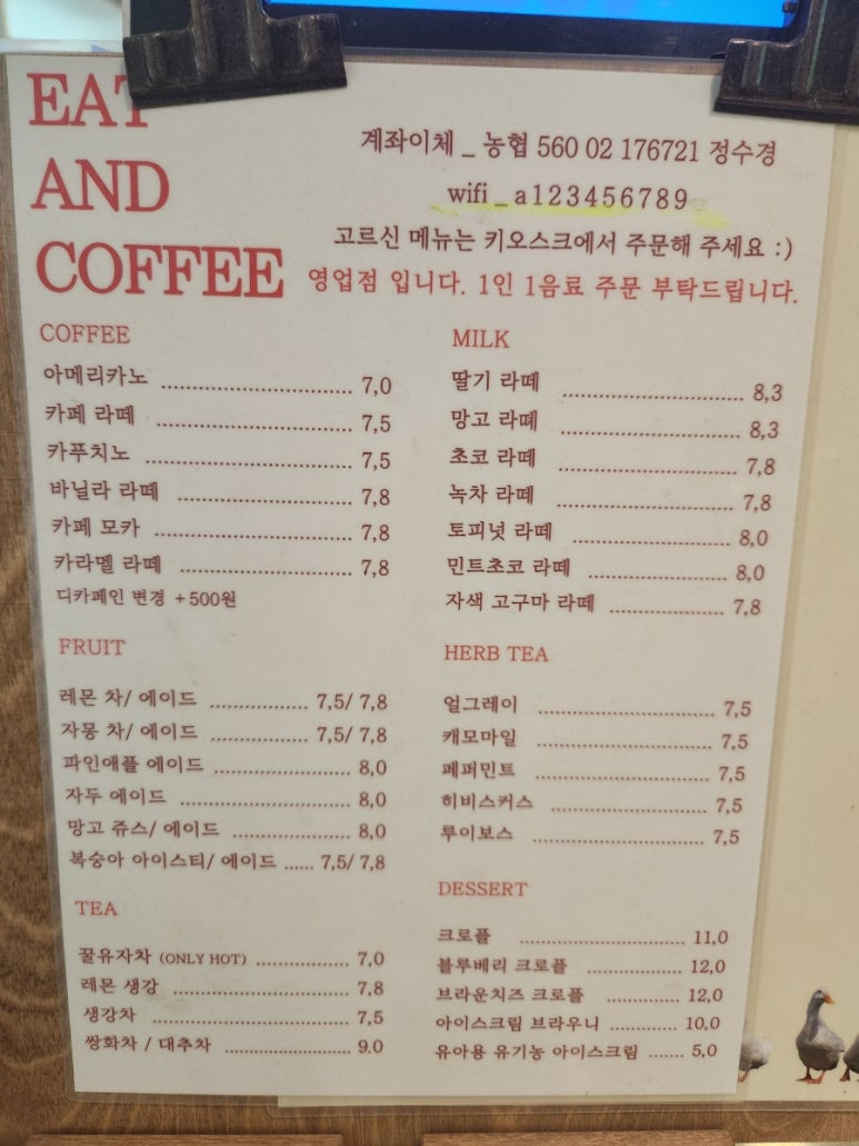 주문은 키오스크로 하구요.