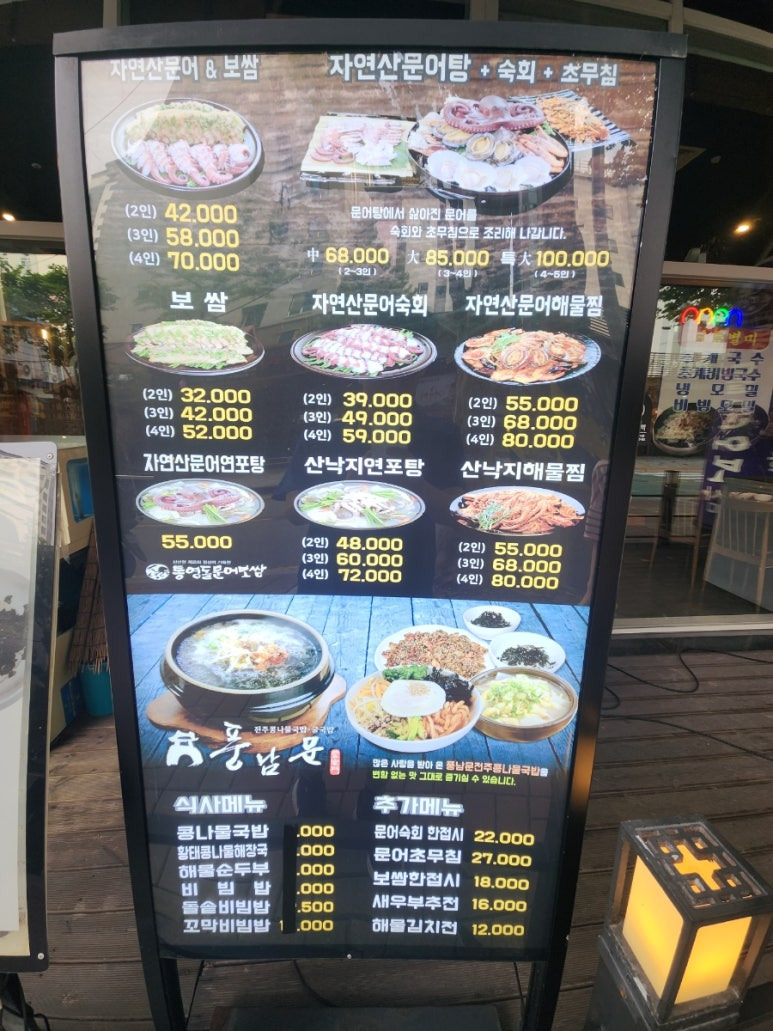 자연산문어 & 보쌈 메뉴가 가장 베스트 메뉴에요.
