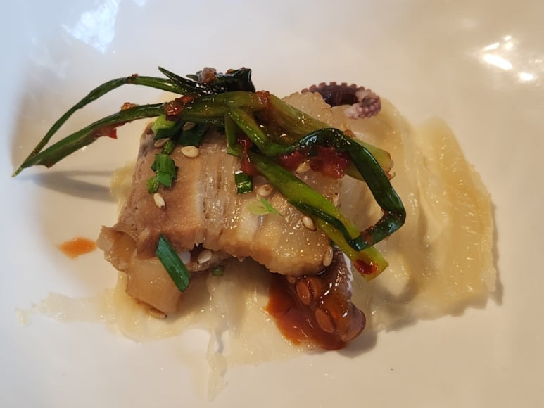 드디어 메인 요리인 문어 보쌈이 나왔어요.