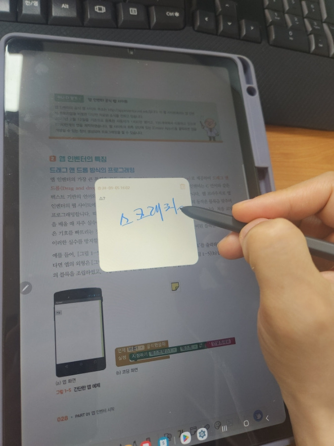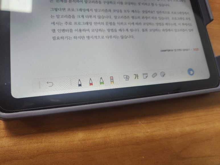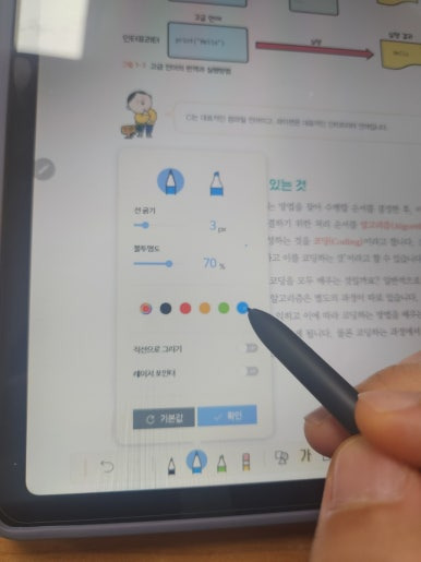 전자책어플 하단에 필기 관련하여