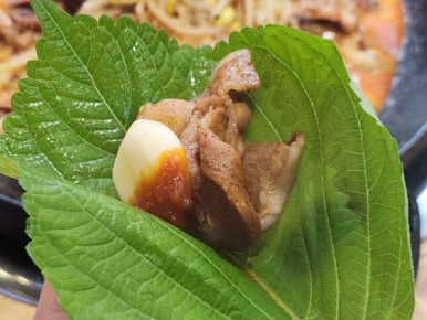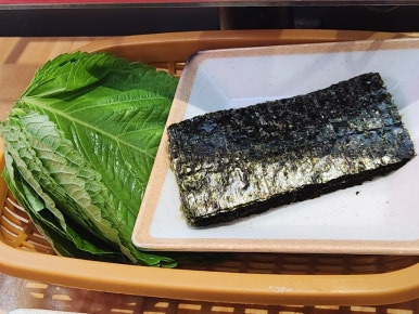 기본으로 제공되는 깻잎에 싸먹어 봤는데