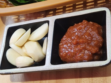 맛을 더해주는 반찬과 양념들이 준비되었어요.