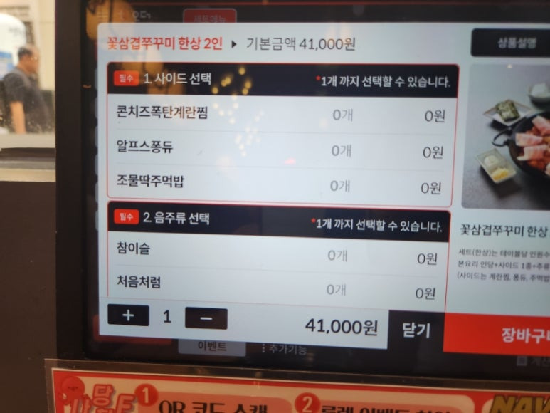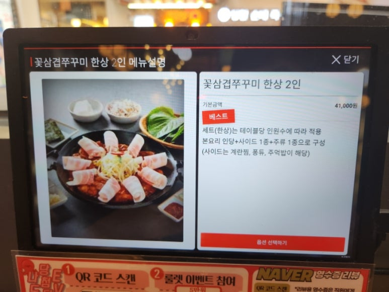 꽃삼겹쭈꾸미 한상 2인을 주문했어요.