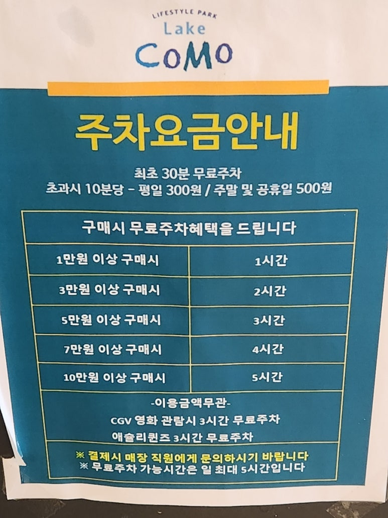 아래와 같이 주차요금 혜택을 받을 수 있어요.