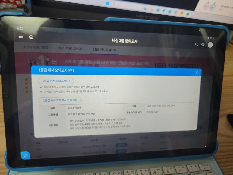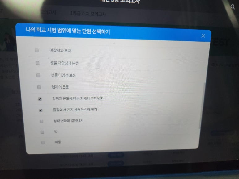 학교 시험 범위를 선택하여 시험응시가 가능해요