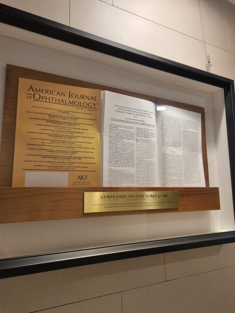 7층에 전시된 로우에너지 스마일 논문 액자 사진
