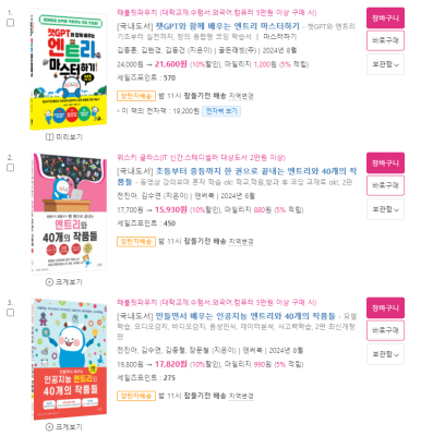 서점에서 엔트리 관련 책을 찾으면