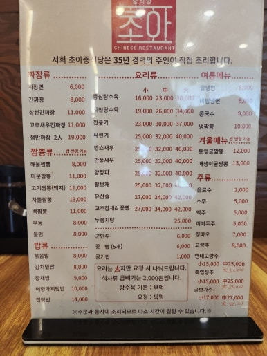 오산중식당답게 메뉴 종류가