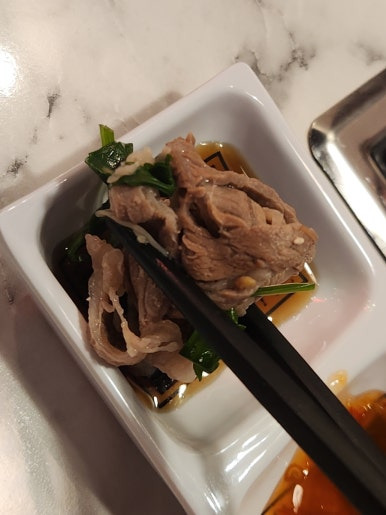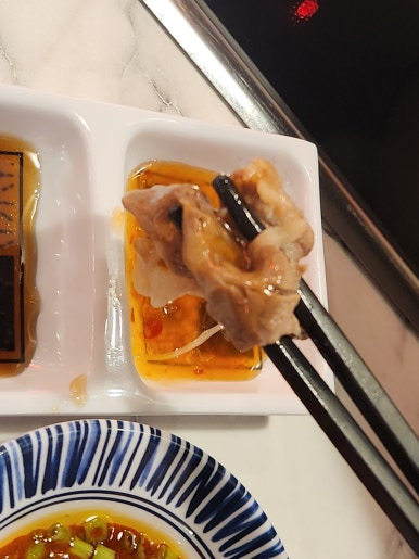 소고기 샤브샤브를 간장과 스윗칠리소스에