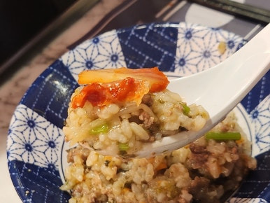 소고기볼 죽을 넣어줬어요.