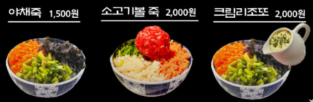 기본 야채죽을 서비스로 받을 수 있구요.