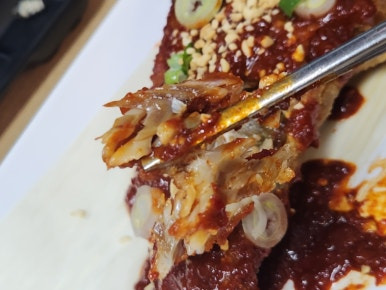 특히 명태튀김 위에 올려진 매콤한 양념이