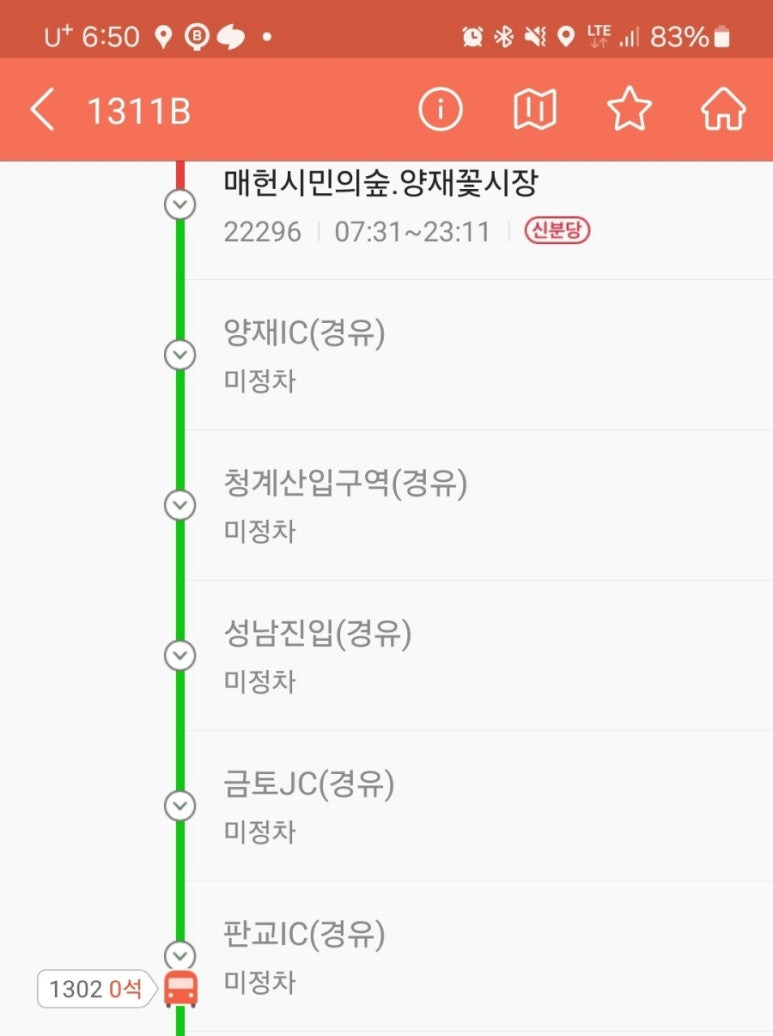 오산시 1311 광역버스 배차가