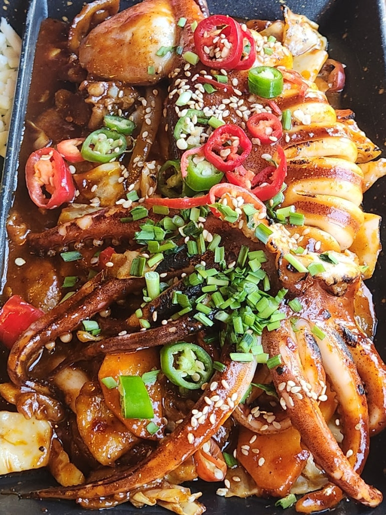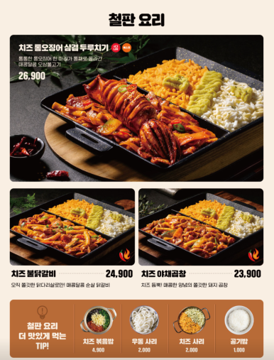 치즈 통오징어 삼겹 두루치기가 등장했어요.