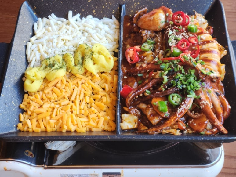 치즈 통오징어 삼겹 두루치기로 주문해봤어요.