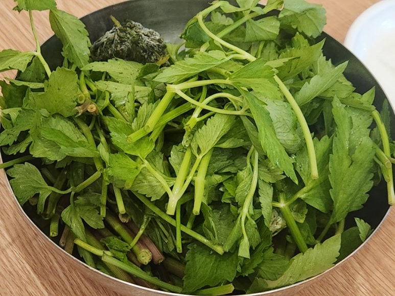 신선한 산지 직송 미나리를 맛볼 수 있어요.