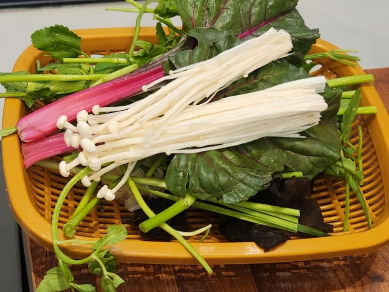 다양하고 신선한 야채를 활용한 샤브샤브에