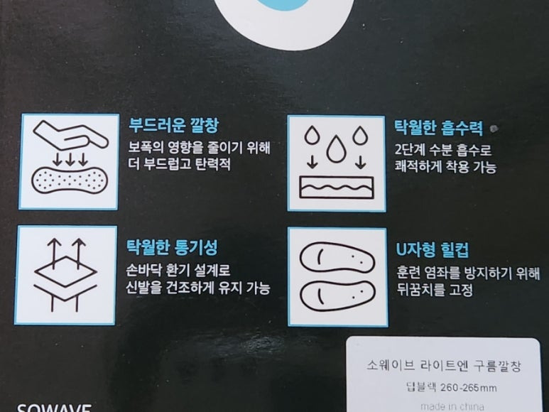 소웨이브 인체공학 구름 깔창 뒷면이구요.
