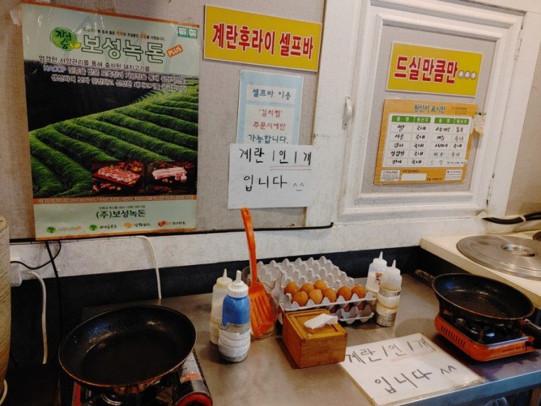 신사동은 유난히 계란후라이 셀프바가 많네요.