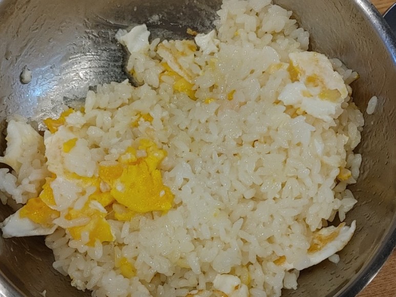 마가린 한 스푼 넣고 밥을 넣어서 비벼봤어요.