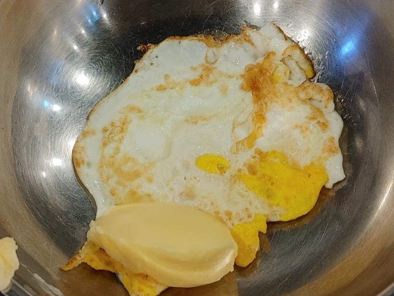 대접에 반숙 달걀 프라이와 마가린을 넣고