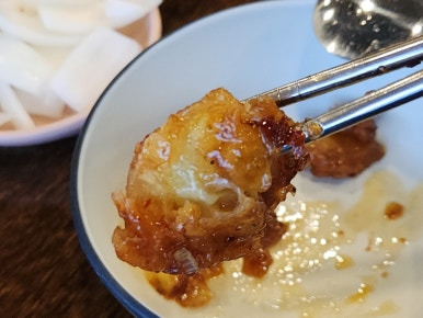 살짝 양념치킨 느낌이 나죠?