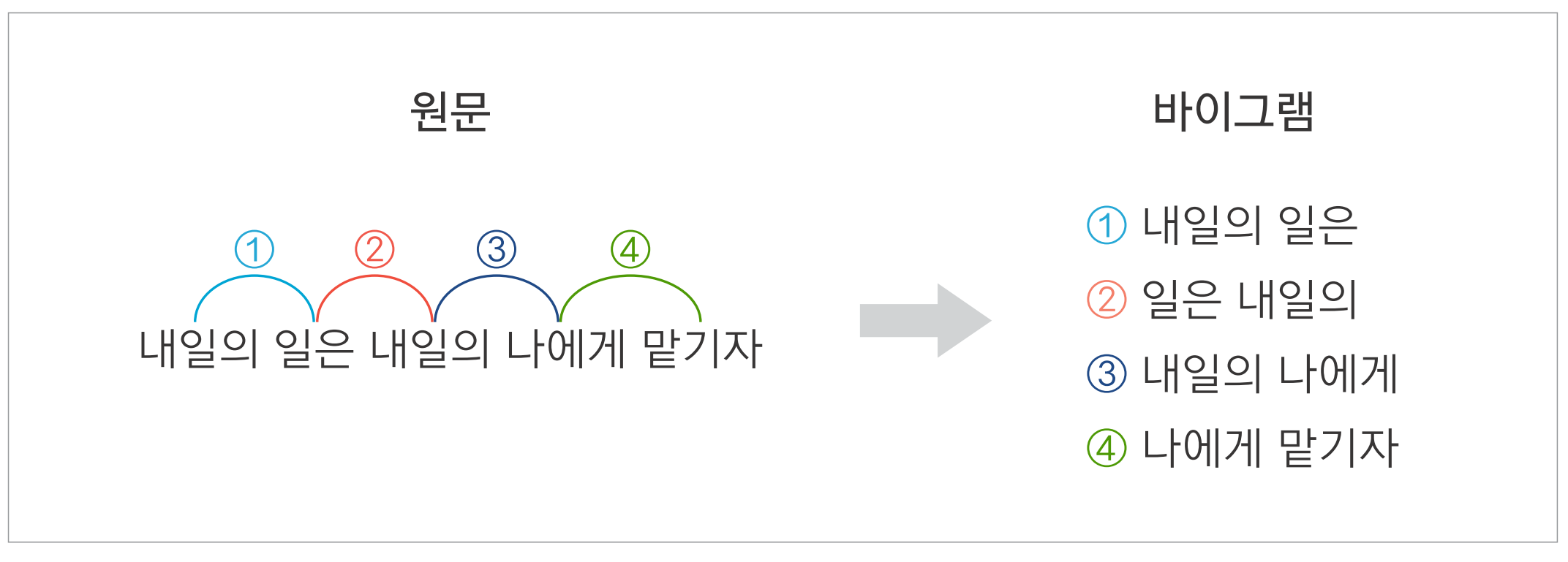 n-gram은 n의 값에 따라 여러 종류로 나뉩니다.