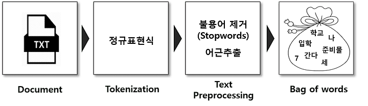 - 문서 수집 : 분석할 텍스트 데이터를 수집합니다.