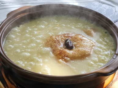 황금 상황 누룽지 오리백숙으로 주문했어요.