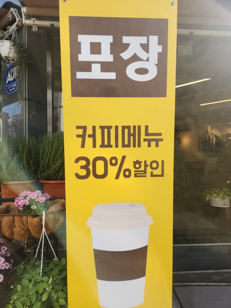 포장은 커피메뉴 30% 할인 적용됩니다.
