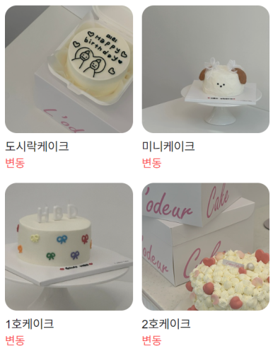 케이크 종류도 다양해요.