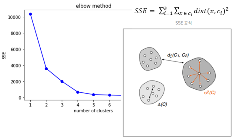 엘보우 기법은 클러스터의 개수에 따른 SSE(Sum of Squared Errors)를 시각화하여 최적의 k값을 찾는 방법입니다. SSE는 클러스터 내의 데이터 포인트와 클러스터 중심 간의 거리의 제곱합으로, 클러스터의 개수가 증가함에 따라 SSE는 감소합니다. 이때 SSE가 급격히 감소하다가 완만해지는 지점을 '엘보우 포인트'라고 하며, 이 지점이 최적의 k값으로 간주됩니다.
