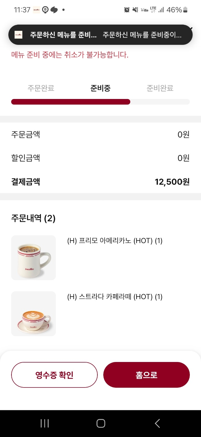저는 아메리카노 프리모를 골랐어요.