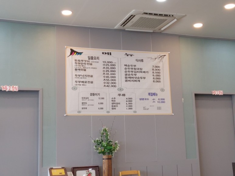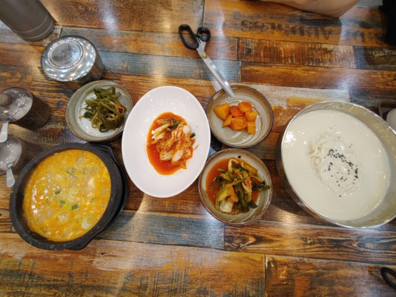 계절메뉴인 냉콩국수와 청국장을 주문했어요.