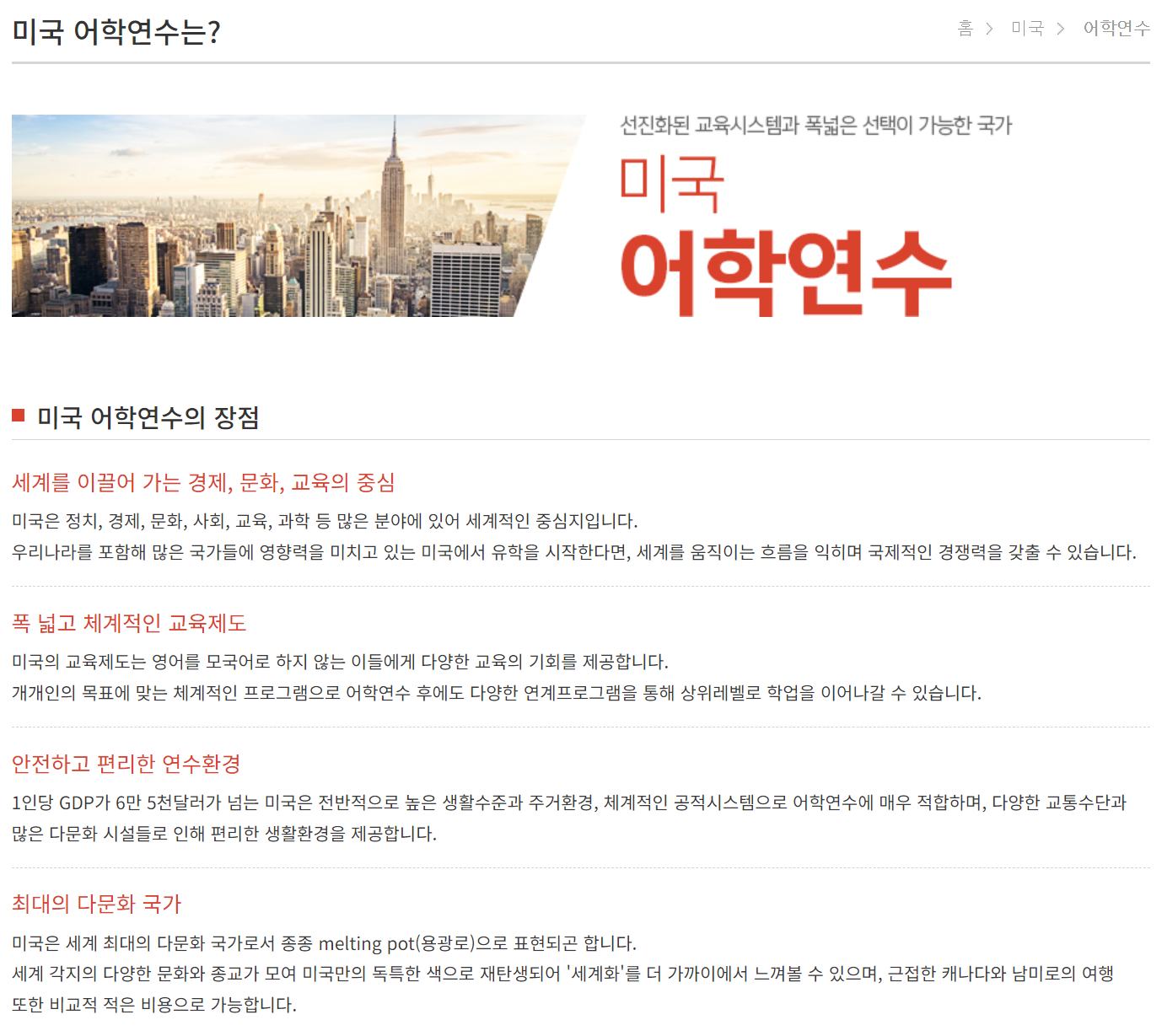 해외 어학연수에 매우 적합한 곳이에요.