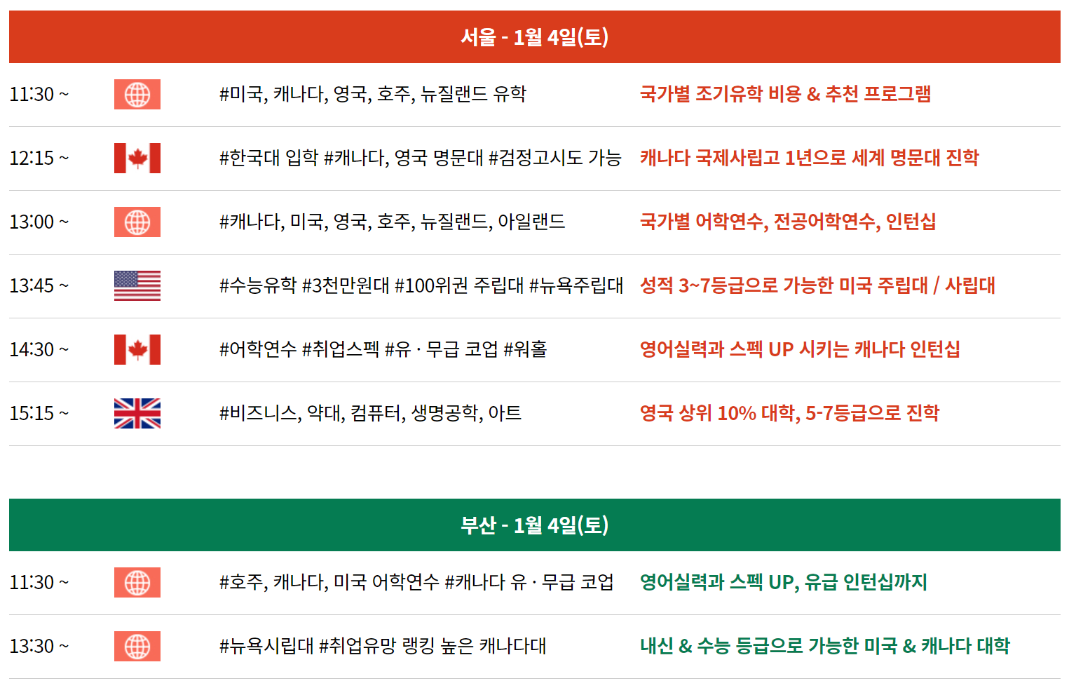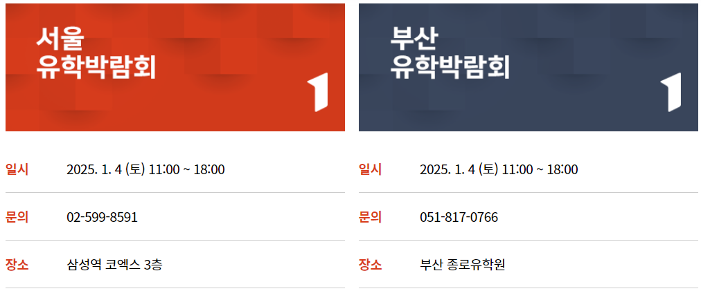 서울/부산 유학박람회 모두 일시는